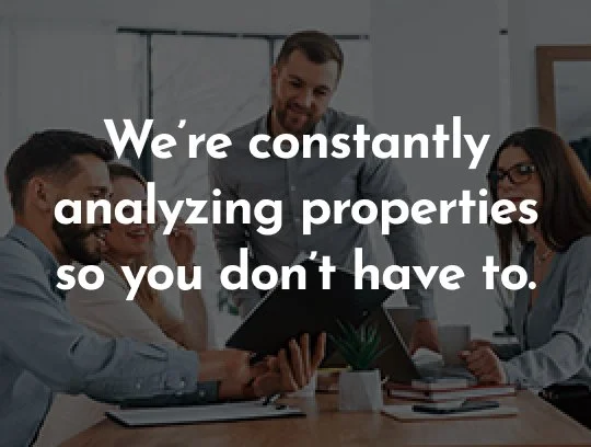 We develop consistent deal flow, underwrite using a realistic (but conservative) approach, and validate within our mastery group.
